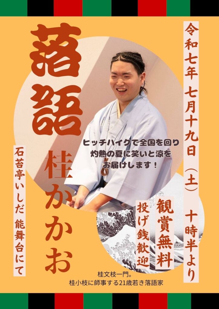 また、同日7/19に落語家の「桂かかお」さんによる落語が、