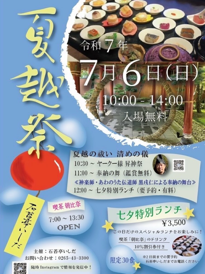 昇神祭や奉納の舞、七夕にちなんだ特別ランチのご提供などご用意いたします。